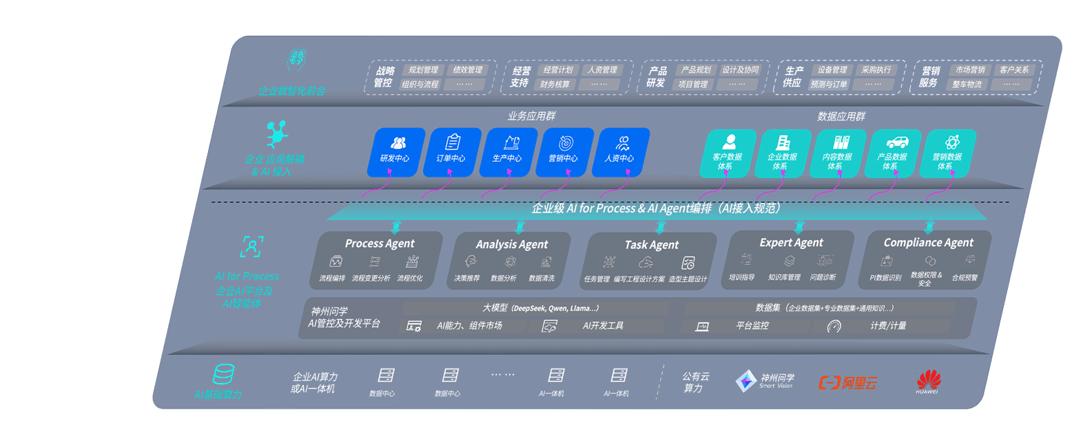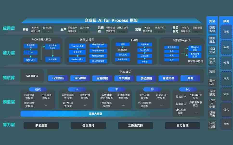 开元问学智车解决方案是一套基于AI技术的汽车行业智能化系统,,,覆盖从底层算力到顶层AI应用的全栈方案。。。。方案由算力层、、模型层和应用层组成:算力层,,,,方案支持多种一体机配置,,具备云端灵活部署、、多云适配以及动态优化计算资源的能力;模型层,,,开元问学平台版提供了企业级AI应用一站式构建与管理平台,,,支持基于后训练强化技术的汽车企业专属模型的训练、、评测和运营;应用层,,,开元问学DeepSeek版提供包括超级员工、、、、智能招采、、智能营销、、、、智能客服、、、、AI for BI等一系列解决方案,,可助力汽车行业实现数字化转型,,,让管理更智能、、响应更敏捷。。